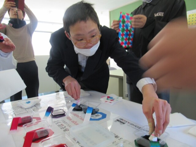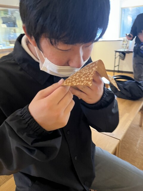 高等部2年生の7名は、2月19日(木)、山梨の文化や産業について見学したり体験したりして理解を深めることを目的に、一秀製紙工場(市川三郷町)と印伝屋(甲府市)へ校外学習に行きました。当日はおだやかな天候で、絶好の校外学習日和となりました。