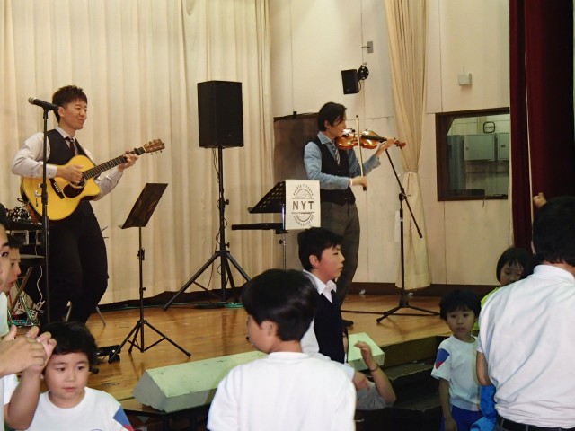 午後はきりの子ステージと題してゲストを招き,コンサートを行いました。今年のゲストはNYT。ヴァイオリンとギターの演奏を聞き,会場が一体となって歌ったり踊ったり,楽しい時間を過ごしました。