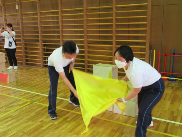 「1年生、一緒に頑張っていきましょう。」と、「仲よしスターブロックゲーム」で楽しみ、みんなで絆を深めました。