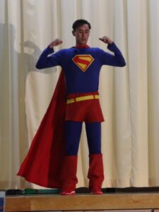 始めの会「仲よし会会長がスーパーマンJr.に扮装して登場!」