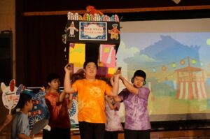 9月26日(金)は、きりの子まつり1日目で中学部の発表が行われました。総合的な学習の時間で取り組んできたグループ毎の表現、音楽で取り組んだ歌とダンス、美術で取り組んだフェスティバルの飾り、国語で取り組んだ台詞など、教科横断的な学習の成果を発表することができました。フェスティバルでは、グループ毎に、釣り屋、射的屋、ターゲット屋、輪投げ屋を表現しました。自分たちが好きなことを考え、どんな店にしたいか伝え合って、グループ毎に個性あふれる表現にすることができました。エンディングのパレードでは、中1がフラッグ、中2がうちわ、中3がみこしを披露し、大いに盛り上がって終えることができました。中学部の仲間でコラボした最高のフェスティバルとなりました。