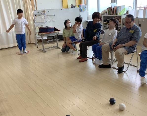 当日は、『ぐーちょきぱーで』の手遊び歌をしたり、ボッチャをしたり、お話をしたりと楽しいひと時を一緒に過ごすことができました。