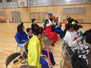 ①仮装して体育館に集合